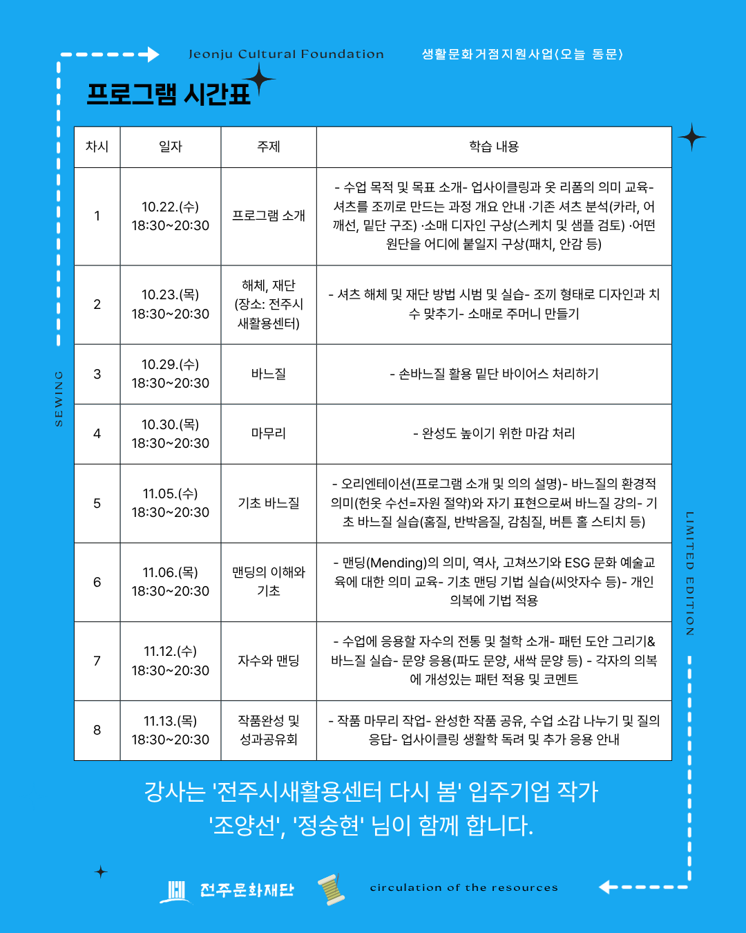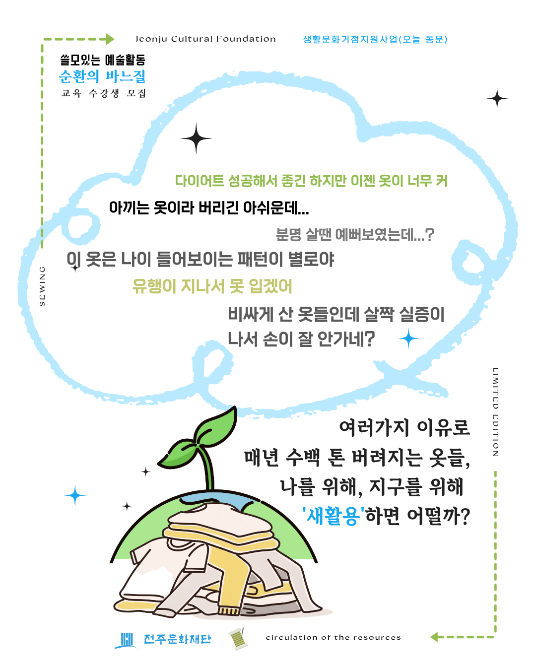 생활문화거점 지원사업<오늘 동문>'쓸모있는 예술활동-순환의 바느질’ 수강자 모집
