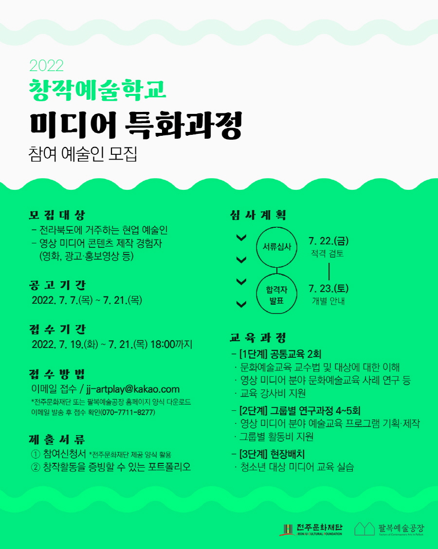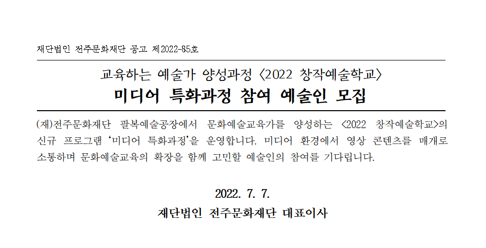 [공고] 〈2022 창작예술학교〉 미디어 특화과정 참여 예술인 모집 공고