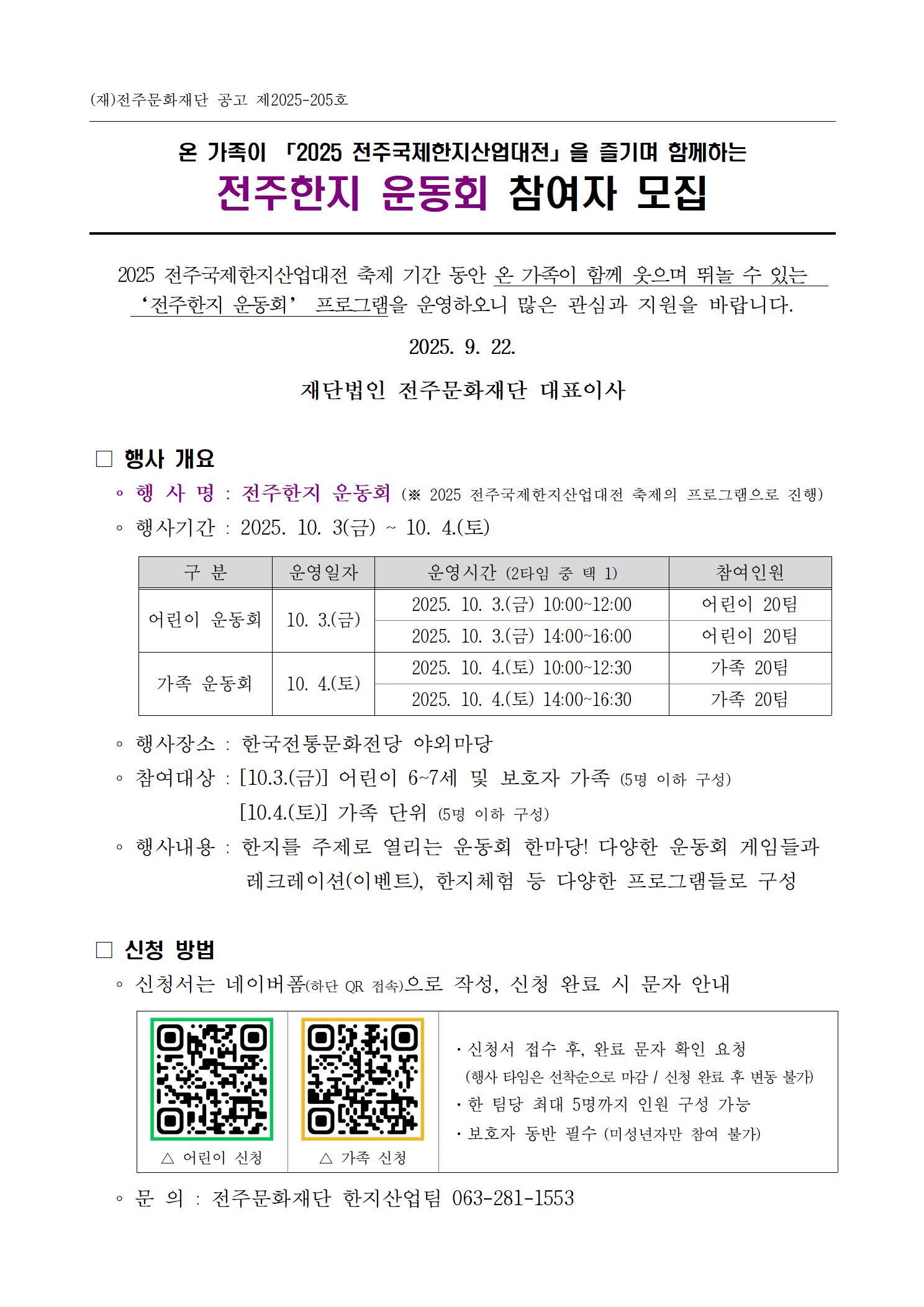 ▷ 10.4(토) '가족 운동회' 신청링크 : https://naver.me/Fhfrg7XT