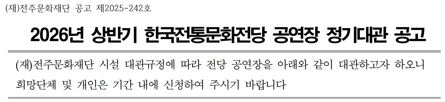[공고] 2026년 상반기 한국전통문화전당 공연장 정기 대관 공고