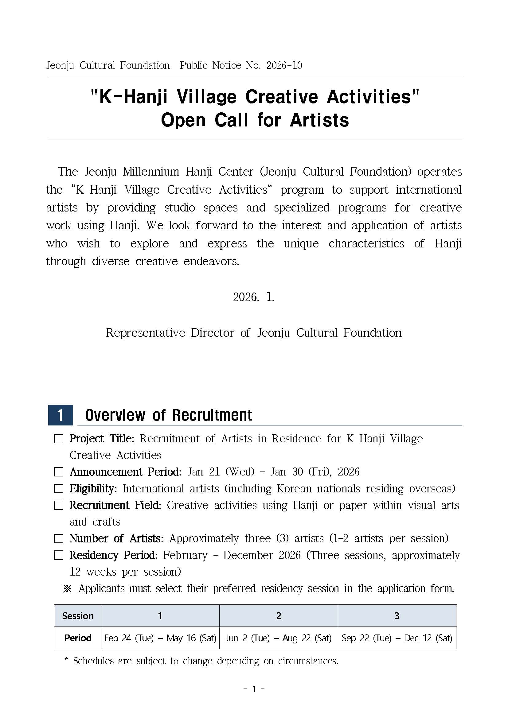 [Open Call] 2026 "K-Hanji Village Creative Activities" Resident Artists Recruitment