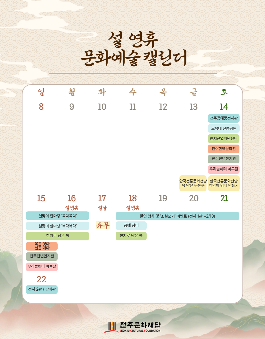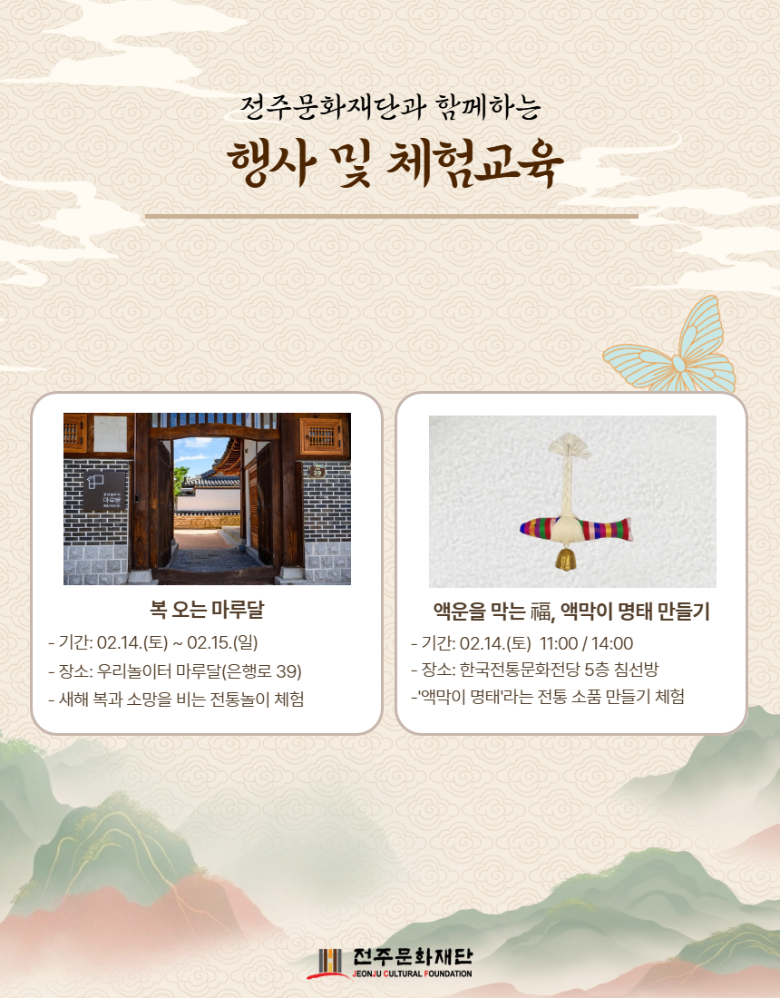 전주문화재단 설 연휴 체험 행사 프로그램 안내