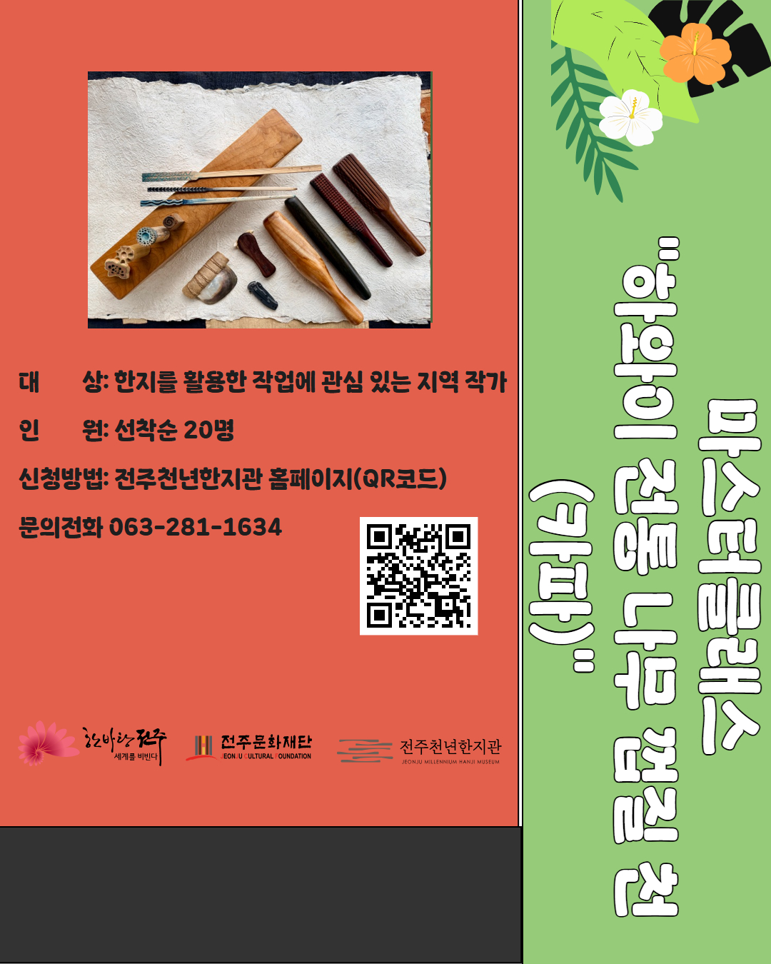 [K-한지마을]2026년도 1차 입주작가 마스터클래스 참가자 모집(4/15,16)