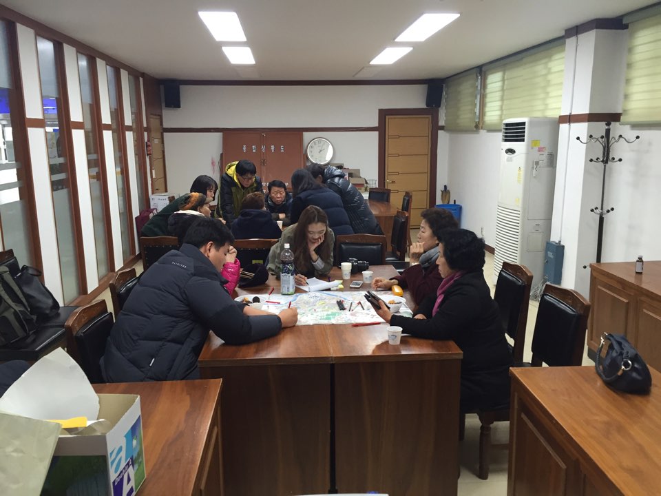 각 동의 큰 지도를 펼쳐놓고 시민이 직접 짚어주시는 공간에 대해서
