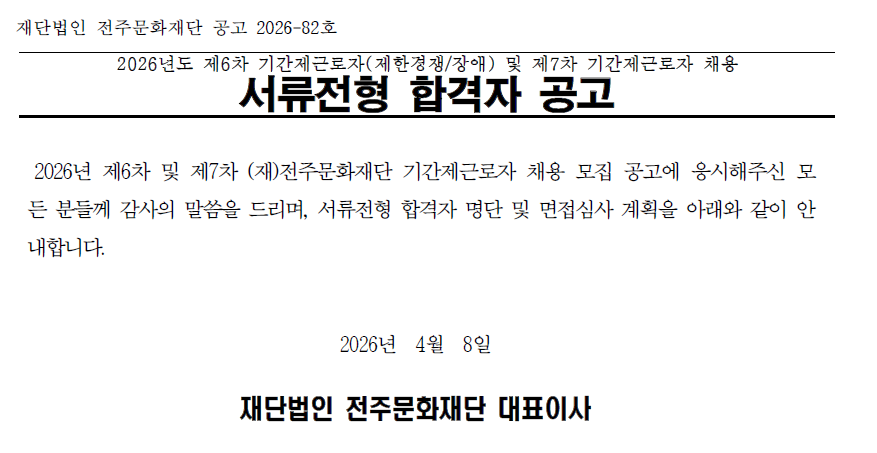 [붙임]2026년도 (재)전주문화재단 기간제근로자 서류전형 합격자 공고.pdf
