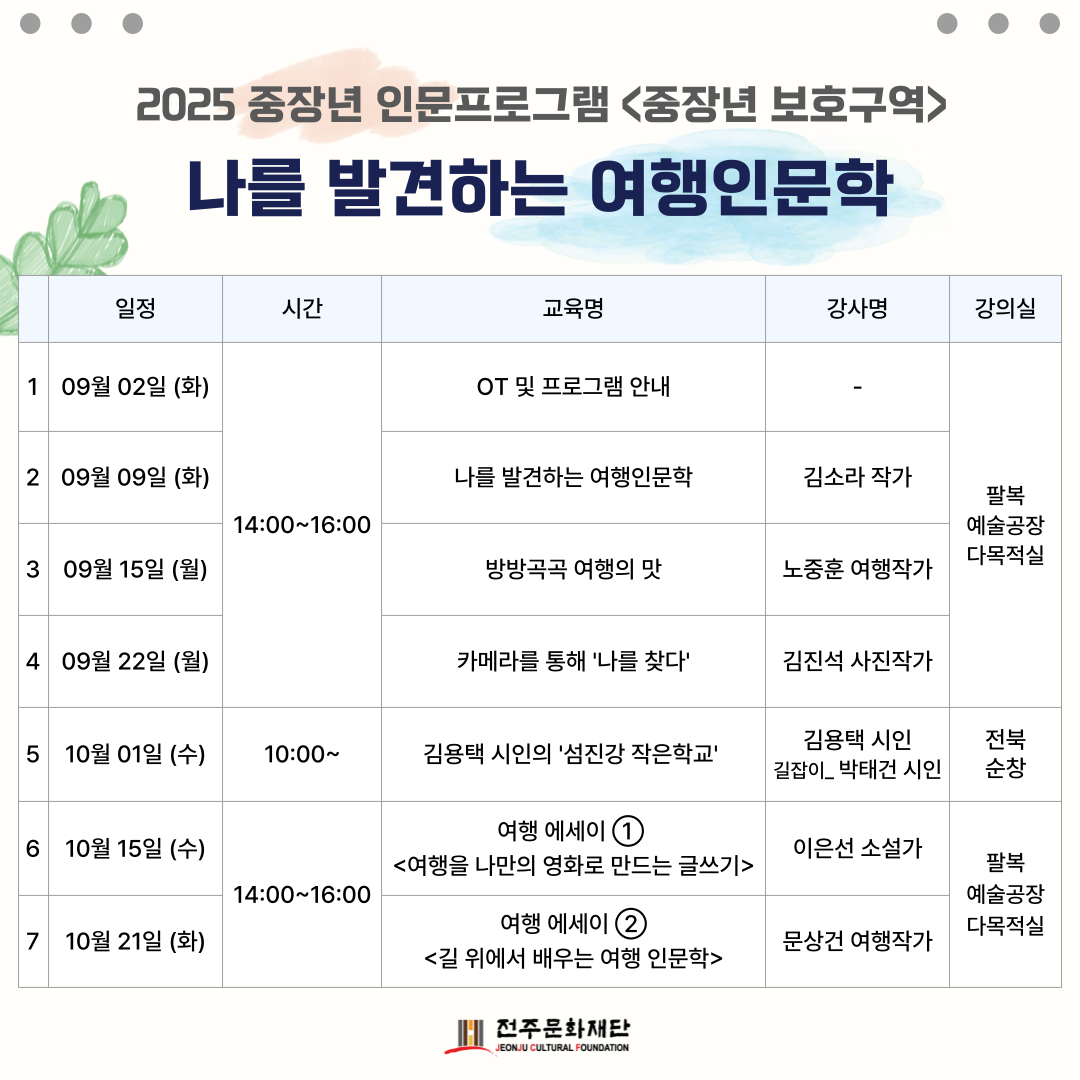 2025 중장년 인문프로그램 <중장년보호구역> - 나를 발견하는 여행인문학