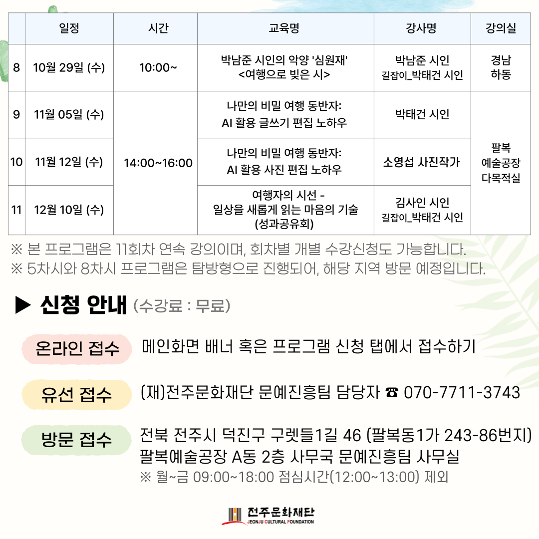 접수 및 문의 : 063-211-9275 / 070-7711-3743