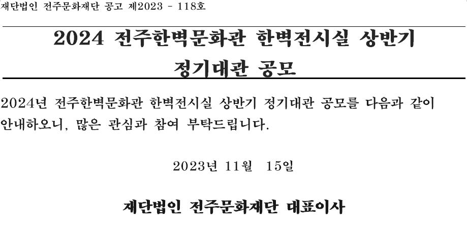 2024년 전주한벽문화관 한벽전시실 상반기 정기대관 모집 공고