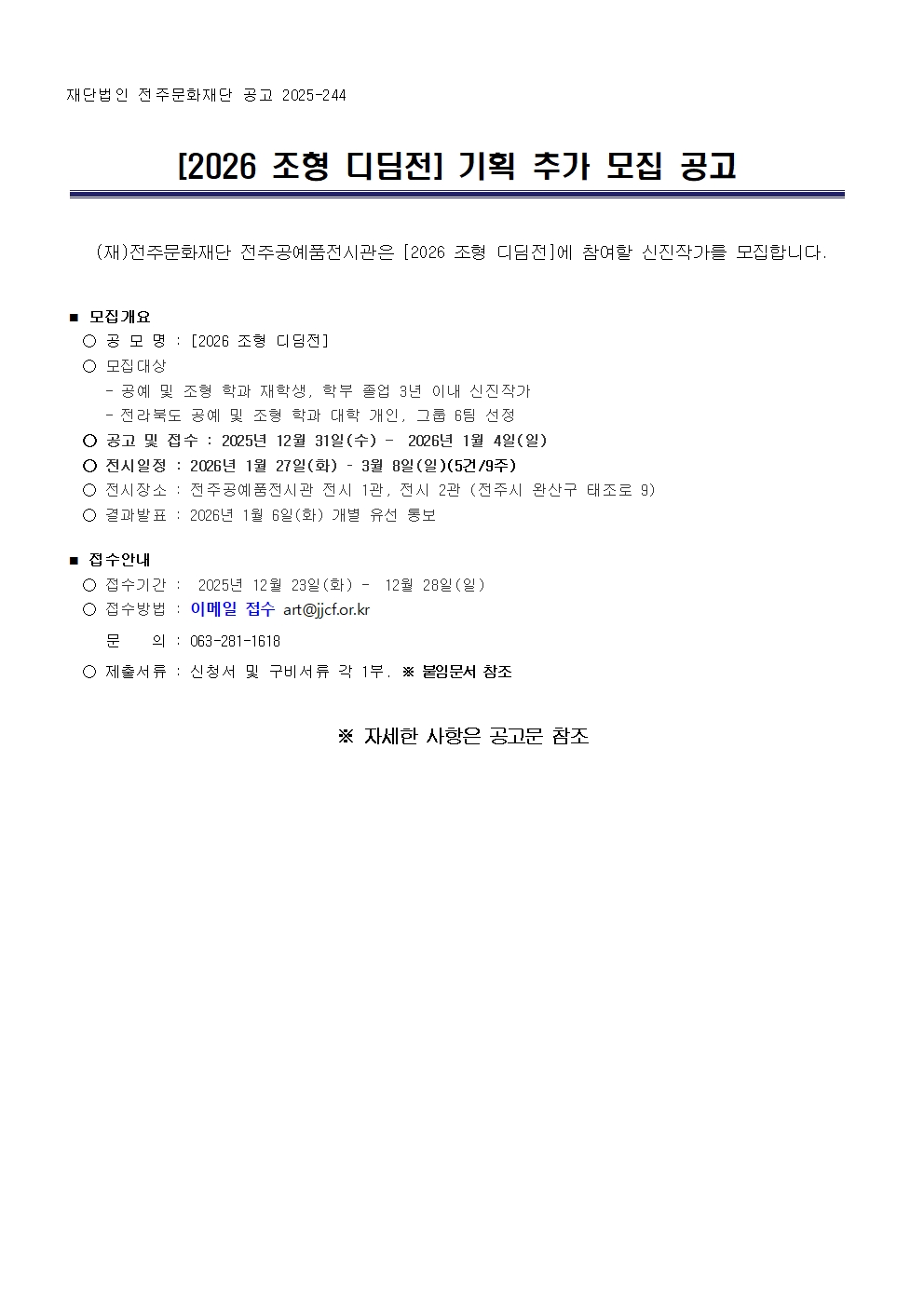 [공모][2026 조형 디딤전]기획 추가 모집 공고