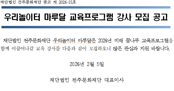 [공고] 2026년 우리놀이터 마루달 교육프로그램 강사 모집 공고
