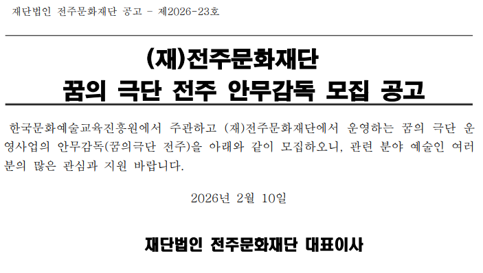 [공고] 꿈의 극단 전주 안무감독 모집 공고