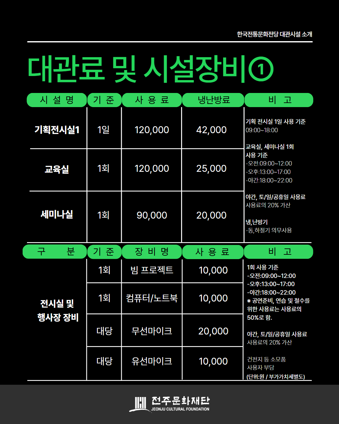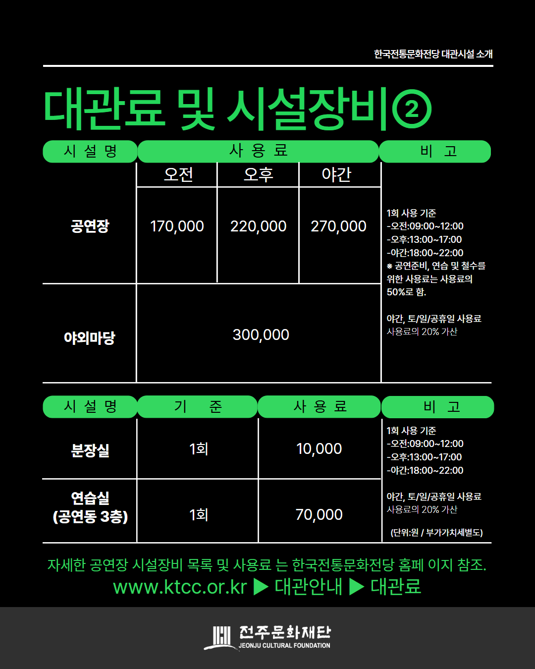 ☞전주문화재단 한국전통문화전당 대관 시설 안내☜