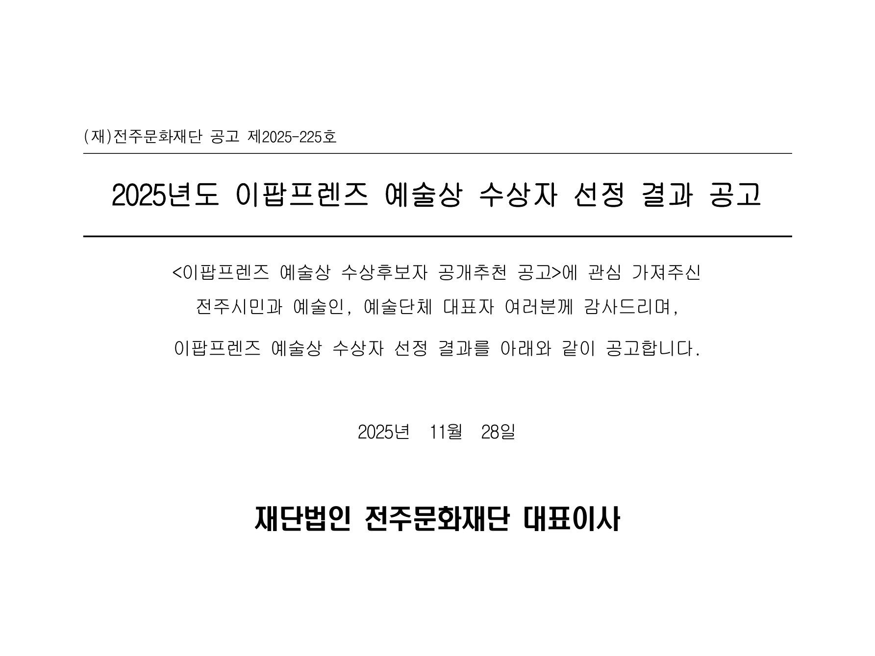 [공고] 2025 이팝프렌즈 예술상 수상자 선정 결과 공고